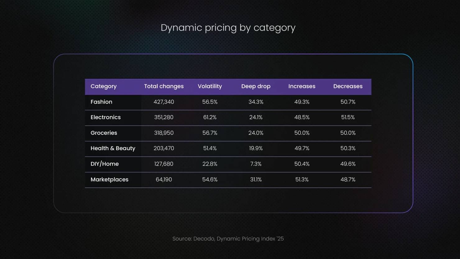 To understand just how pervasive dynamic pricing has become, we introduced our second-annual Dynamic Pricing Index, analyzing over 1.5M price data points across more than 120 eCommerce platforms in 40+ countries throughout 2025. The findings reveal a pricing landscape that is far more volatile and far more algorithmically driven than most consumers realize.