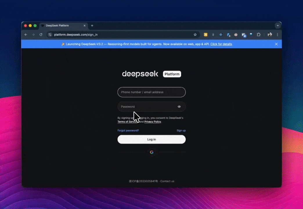 - Go to platform.deepseek.com and create an account.