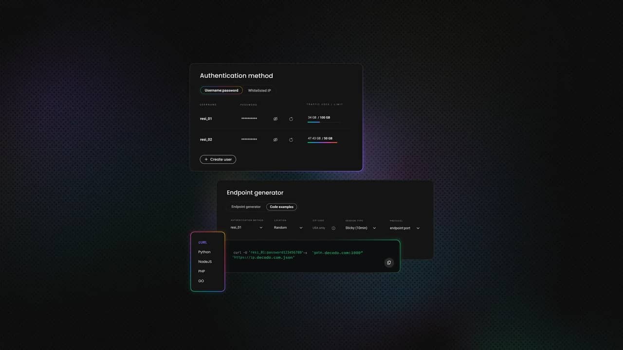 - Pair with Decodo’s residential or mobile proxies for reliable large-scale testing