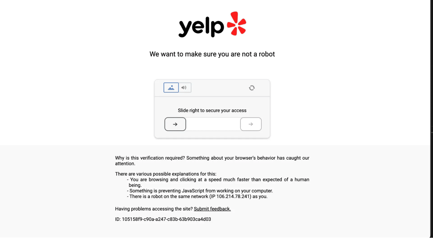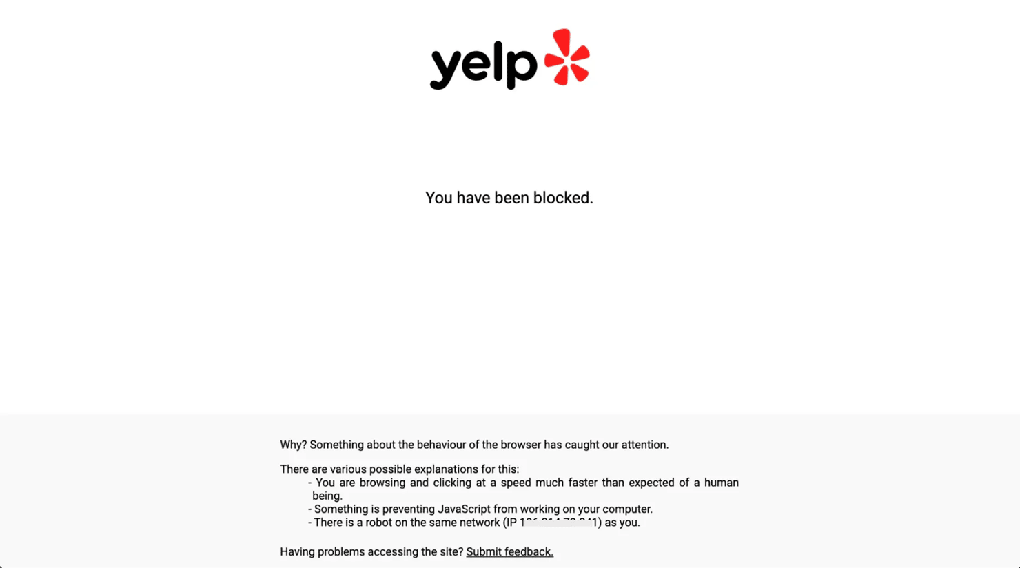 Yelp's bot detection checks TLS fingerprints, browser behavior, and request patterns. It's aggressive. 2 common block responses:
