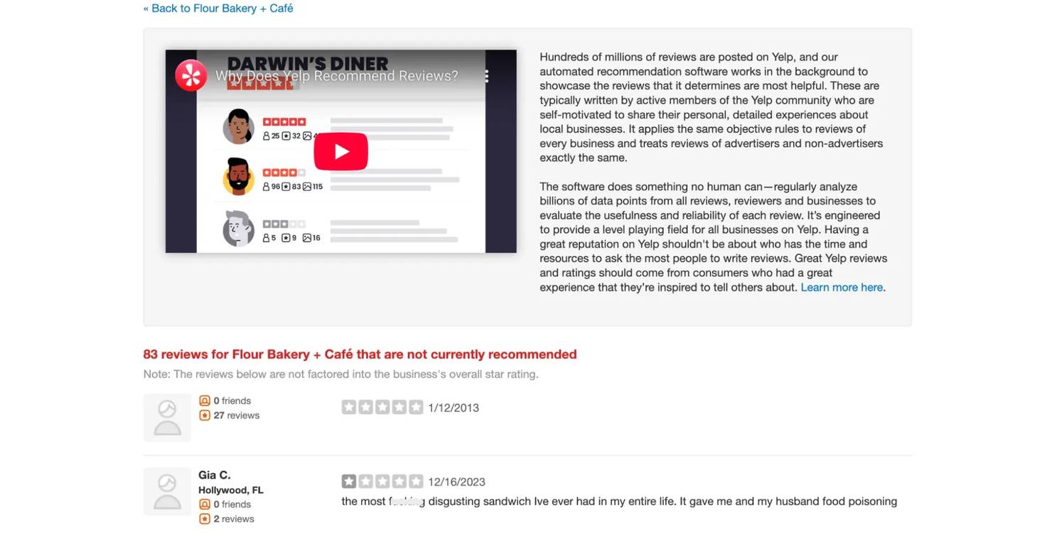 This is the scraper most Yelp tutorials skip entirely. Yelp suppresses reviews that its algorithm deems unreliable. They aren't included in the star rating, and they're hidden behind a small link at the bottom of the reviews section.