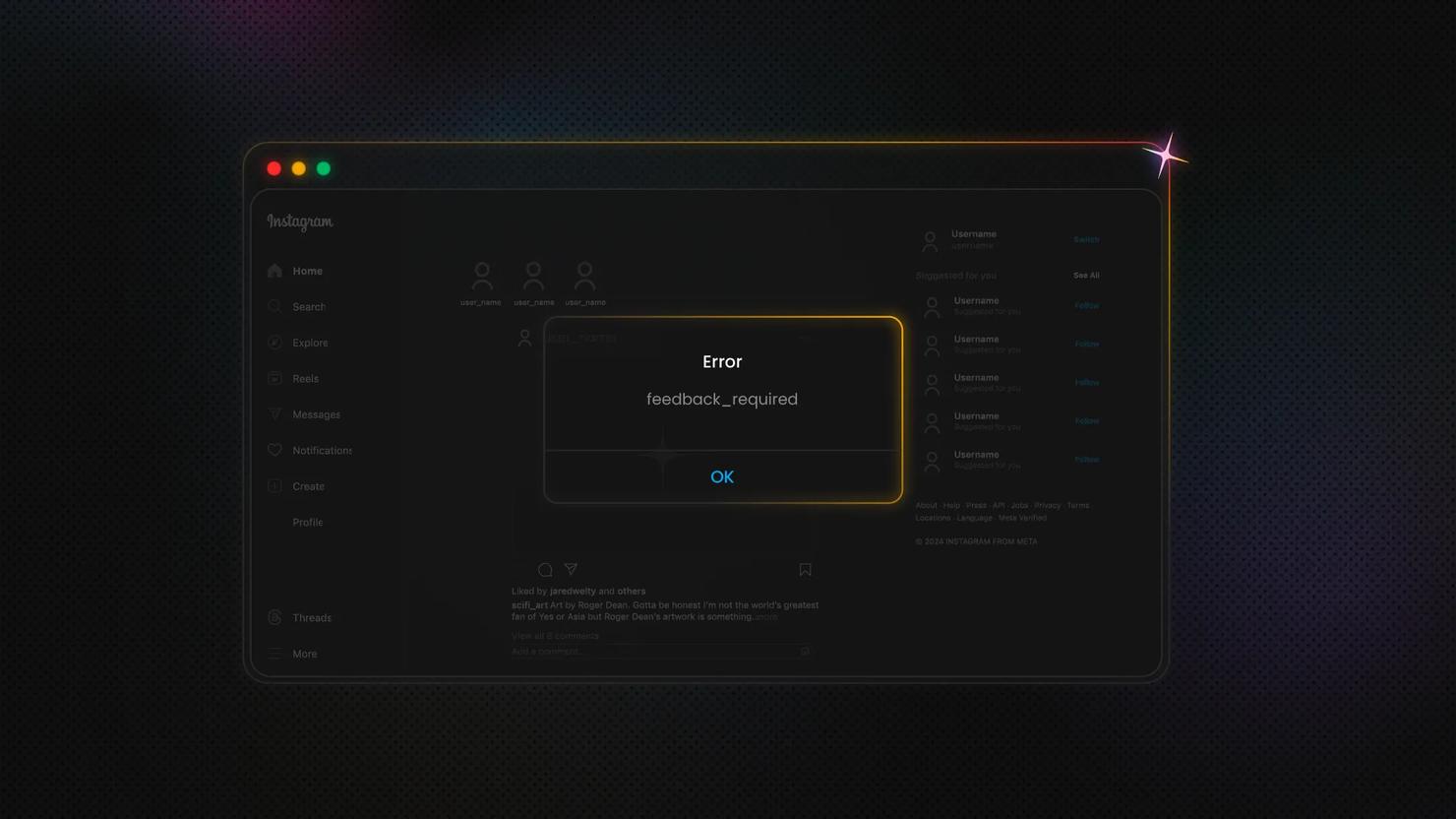 An Instagram account can be blocked with "Action Blocked" error message for various reasons, including: