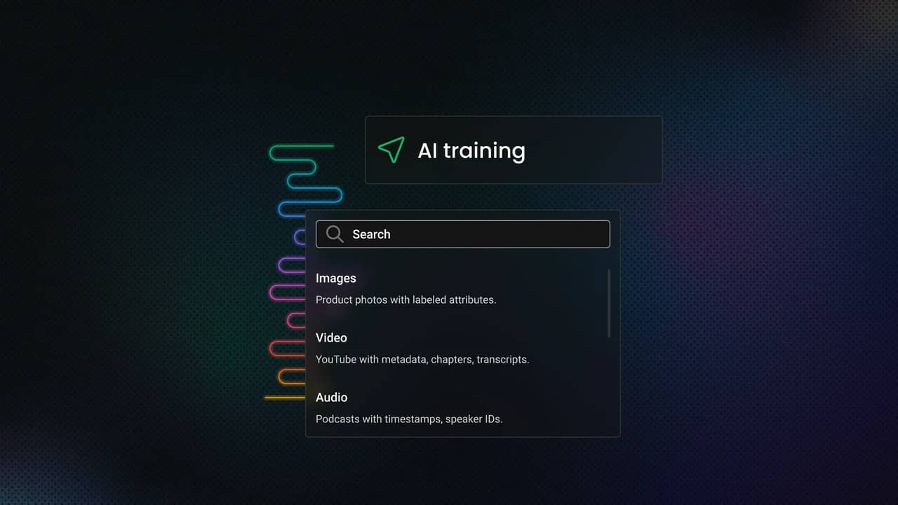 Multimedia scraping serves two broad purposes. The first is AI training: collecting image, video, and audio data for vision, speech, multimodal, and generation workflows. The second is analysis: monitoring markets, products, campaigns, and public media where text alone doesn't capture the full signal.
