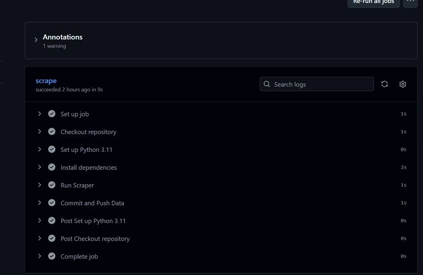 Note. While the schedule library is easy to set up, it requires a continuously running Python process. As such, if you close your script by shutting down your IDE or if there is a network provider issue, your scraper stops working.