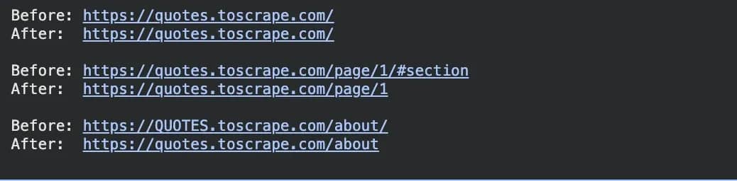 You might notice the crawler visits both https://quotes.toscrape.com and https://quotes.toscrape.com/ as separate entries. That's the trailing slash problem in action, and it's exactly why URL normalization matters. We'll cover that shortly.