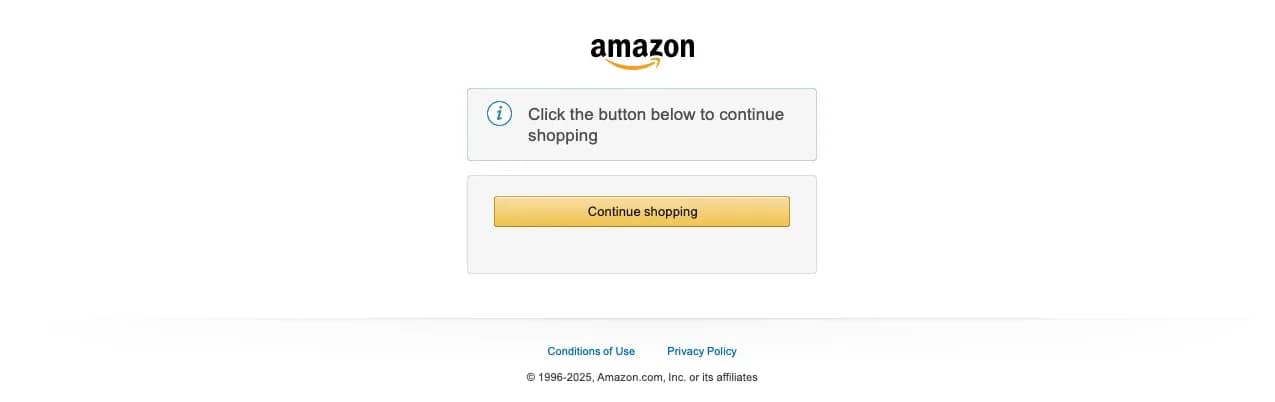 Amazon served a CAPTCHA validation page. The Amazon bot detection combines device fingerprinting with behavioral scoring and account-level signals. Sites using Cloudflare Bot Management with managed challenges (Turnstile, proof-of-work) also block this setup – Cloudflare checks JA3/JA4 TLS fingerprints, which Camoufox doesn't modify.
