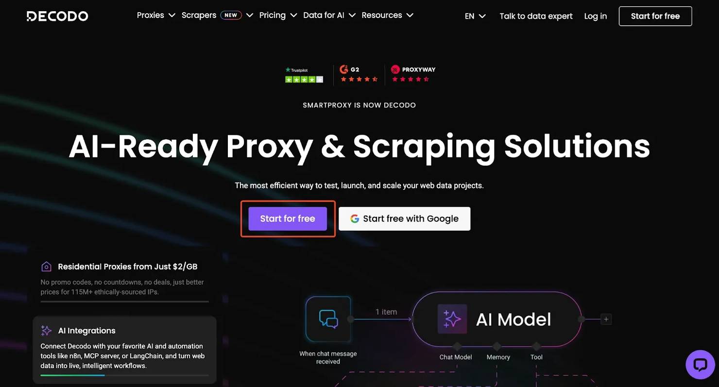 Decodo's residential proxies rotate IPs automatically so your scrapers stay under the radar.