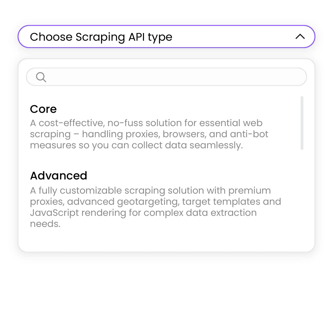 Collect real-time information from any website with our all-in-one Web Scraping API.
