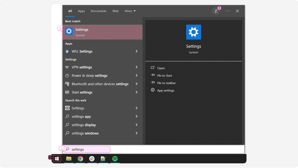 - Open the Start menu. Search for Settings and open them. You can also use the Win + I shortcut.