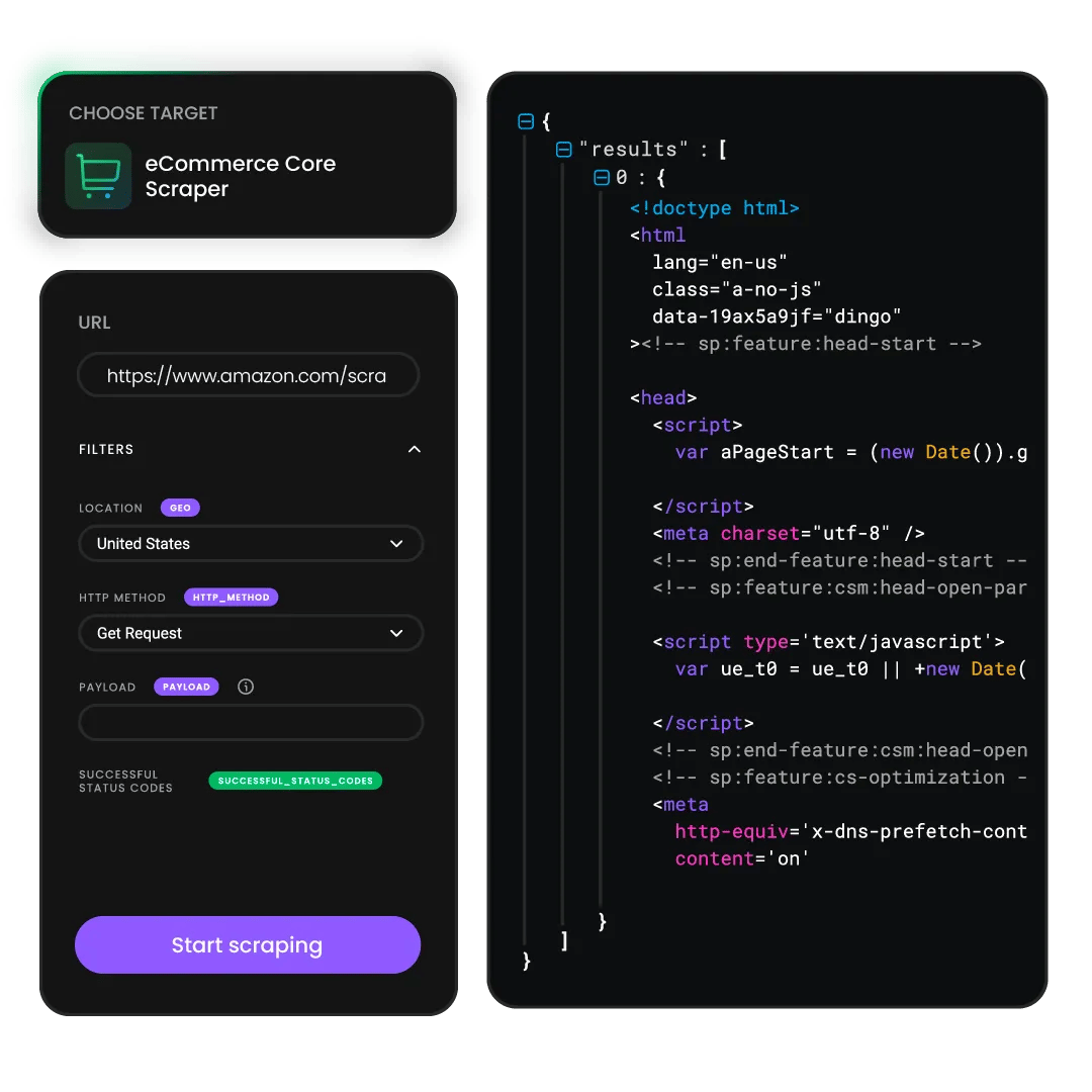 Collect data from even the most advanced targets without facing CAPTCHAs or IP bans.