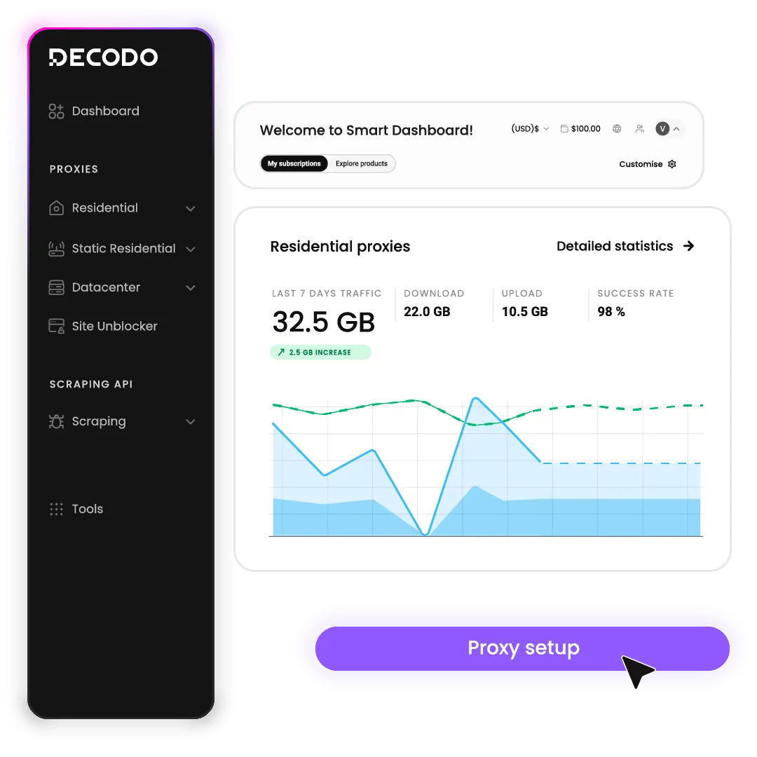 Easy Decodo proxy setup with popular applications and third-party tools. Check out these guides to get started right away.