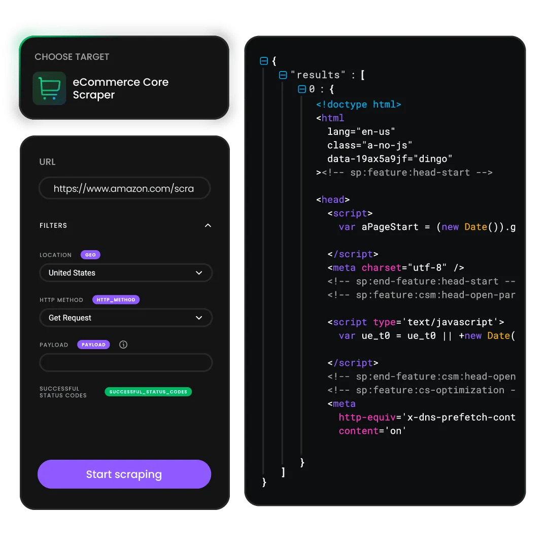 Collect data from even the most advanced targets without facing CAPTCHAs or IP bans.