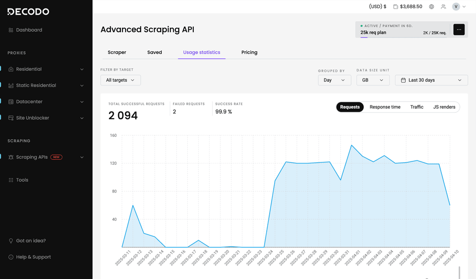 To scrape data from a website, you can use programming languages like Python with libraries such as Beautiful Soup or Scrapy to build custom scripts. Alternatively, dedicated scraping tools or APIs, like Smartproxy’s Scraping API, offer a more user-friendly, efficient way to automate and streamline the data extraction process without requiring extensive coding knowledge.