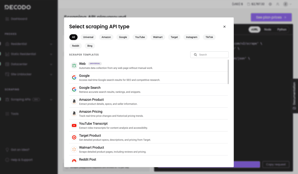Gain access to real-time data at any scale without worrying about proxy setup or blocks.