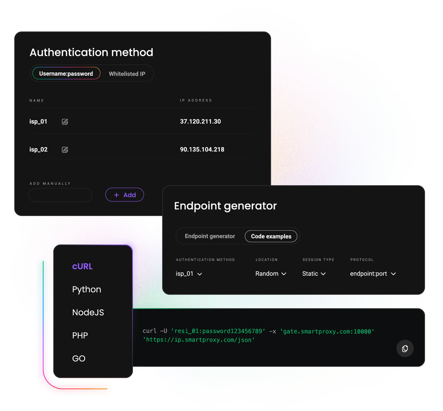 Users love our proxies with ethically-sourced IPs around the globe for their exceptional performance, advanced targeting options, and ability to overcome CAPTCHAs, geo-restrictions, and IP bans.