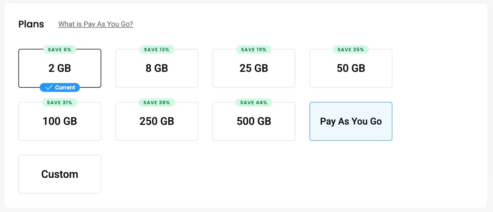 After creating your account, you’ll need to purchase a plan on the dashboard. Select from a wide range of subscription options, or if you have a one-off project, choose the Pay As You Go option and pay only for the traffic you use.