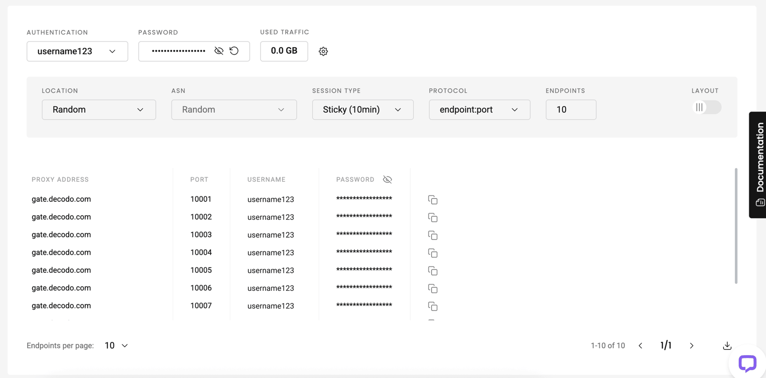 You can enter a number of endpoints you’d like to be generated. The default value is set to 10. Copy a specific part or one entire endpoint to your clipboard, or download the list in CSV or TXT format.