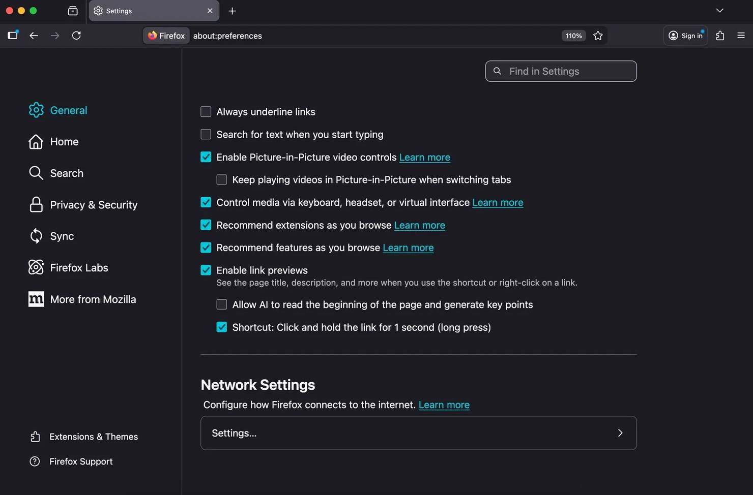 - Scroll to the bottom of the page to the Network Settings section.