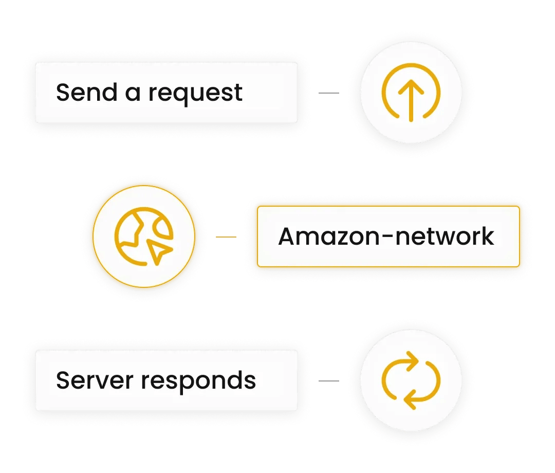 - Decodo's infrastructure assigns a fresh IP from the relevant pool (residential, mobile, ISP, or datacenter) and forwards your request to Amazon's servers.