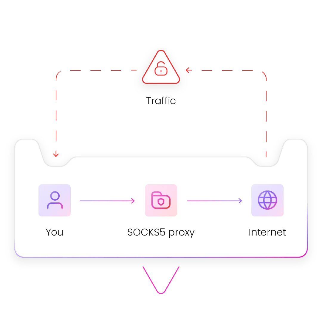Premium SOCKS5 proxy servers with TCP and UDP support, authentication, and multi-protocol compatibility. Perfect for web scraping, app development, and high-performance apps that require a technical edge over HTTP proxies.