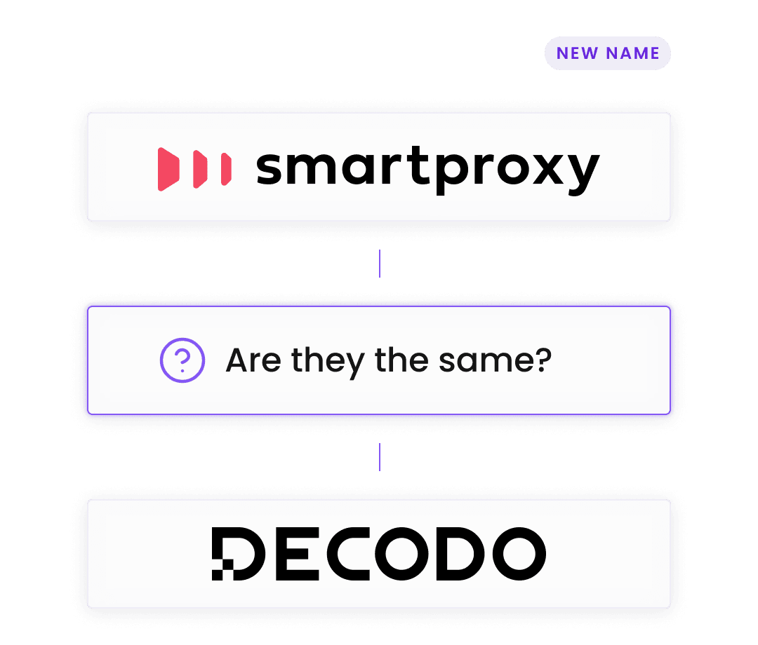 The Smartproxy you knew and loved is now Decodo. Same infrastructure, same proxy pools, same award-winning tech support team.