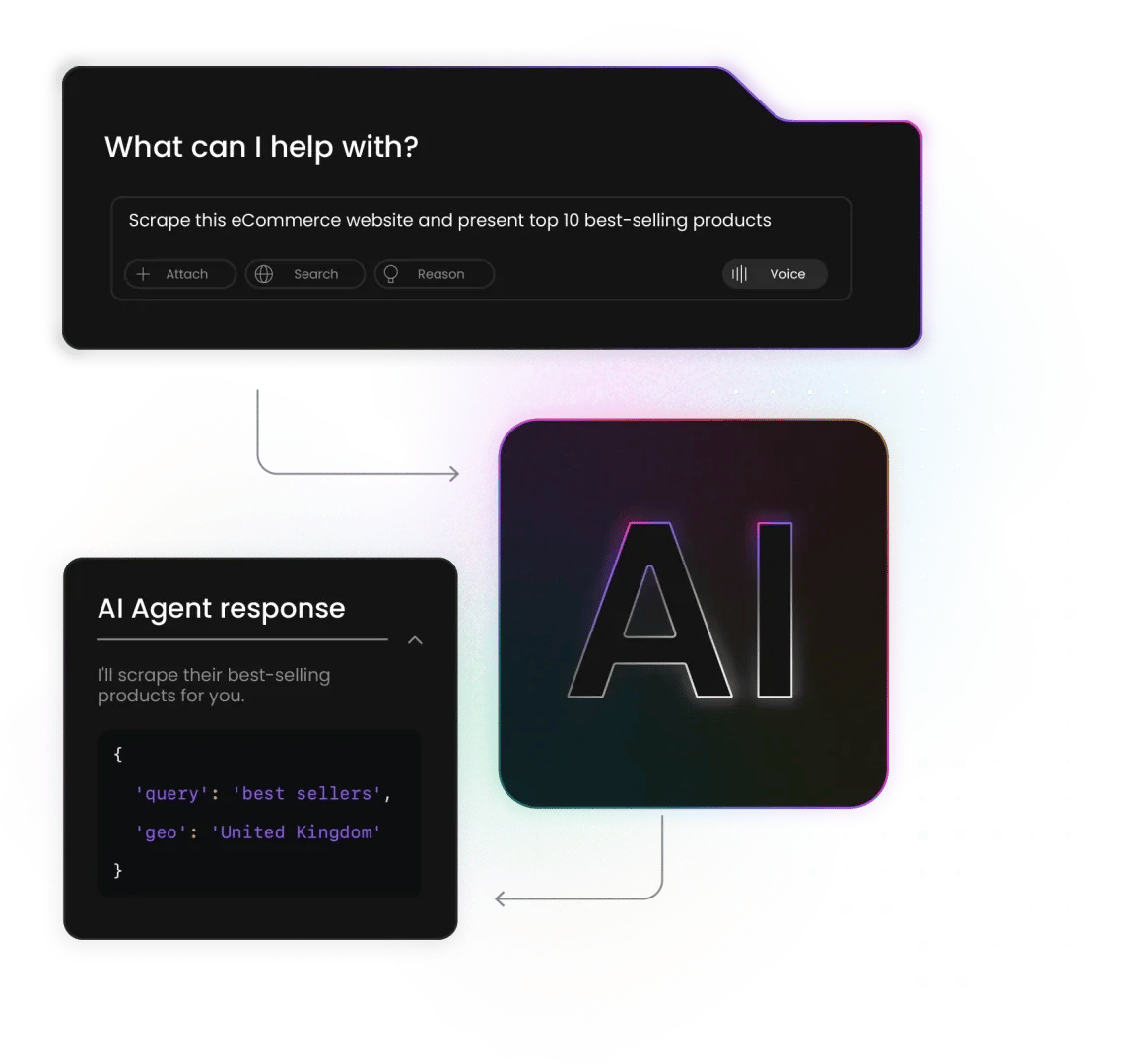 Use ready-made tools for Google, Amazon, Reddit, and more, each returning clean, structured data your AI can consume instantly.